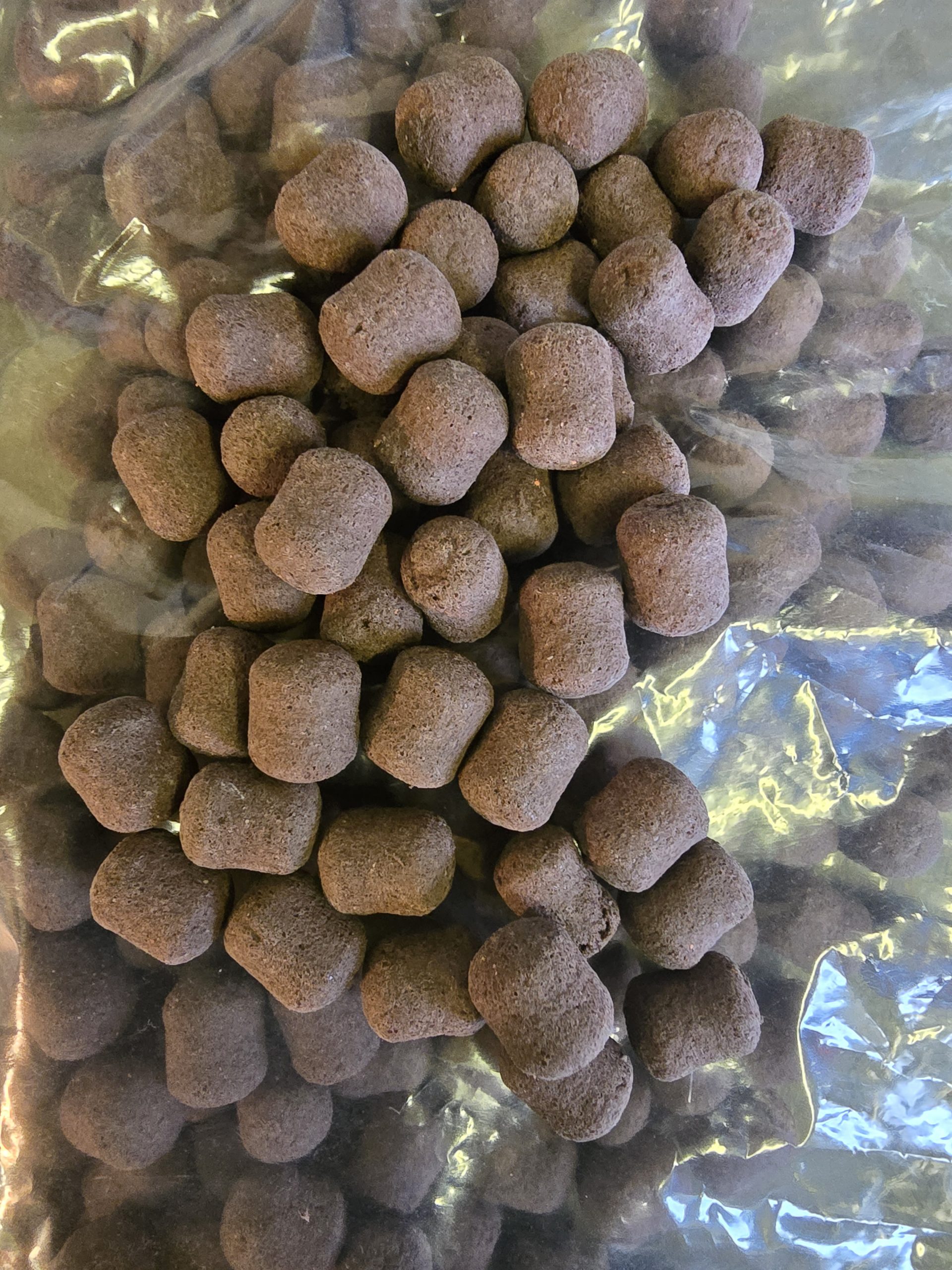 These are 10mm x 12mm Dark Brown Wafter Pop-Ups. They are available in a 150g bag. The are overs made for a customer. They can be over flavoured.